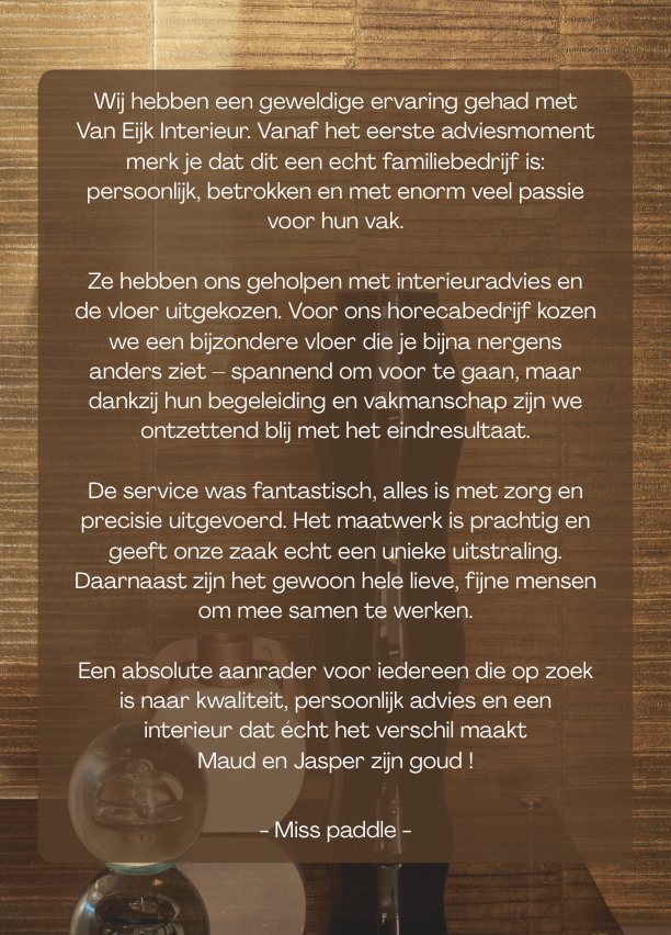 Bij Van Eijk denken we met je mee van plan tot uitvoering, met aandacht, vakmanschap en een persoonlijke benadering die elk project eigen maakt.